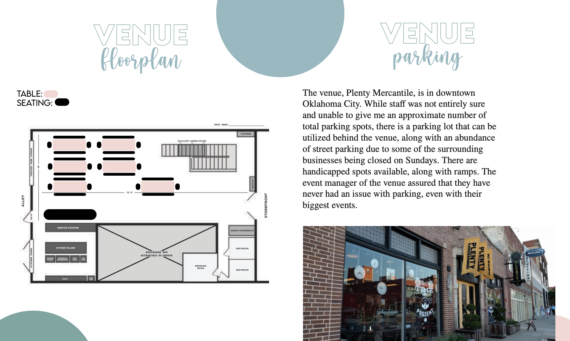 In my event planning course, I created this venue plan for a baby shower. The content that I created is to explain the choice of venue and the parking and to provide a visual aid to imagine the layout of the floor for the event.